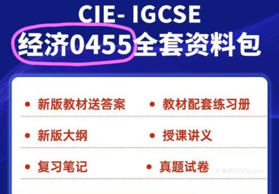 - 作用:明确考试范围(比如0455考“消费者行为”“市场失灵”,0987侧重“宏观经济指标”“国际贸易”)、题型占比(比如Paper1是选择题,占40%;Paper2是简答题,占60%),避免盲目复习。