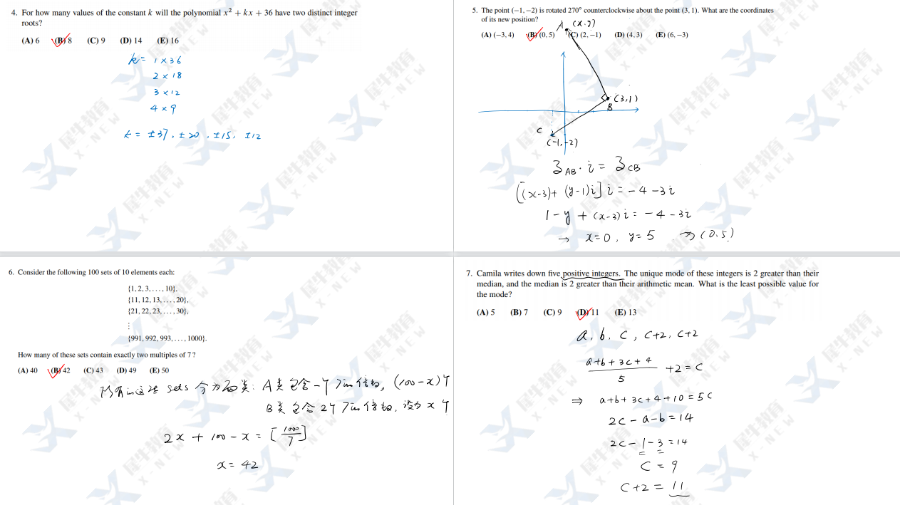 犀牛老师整理的AMC10分类题库包含平面几何、立体几何、代数、数论、排列组合五大模块,这也是AMC10考试中重点考察的五大模块,尤其是代数和几何,占比非常大,同学们在日常备考过程中一定要打好基础,有备无患。