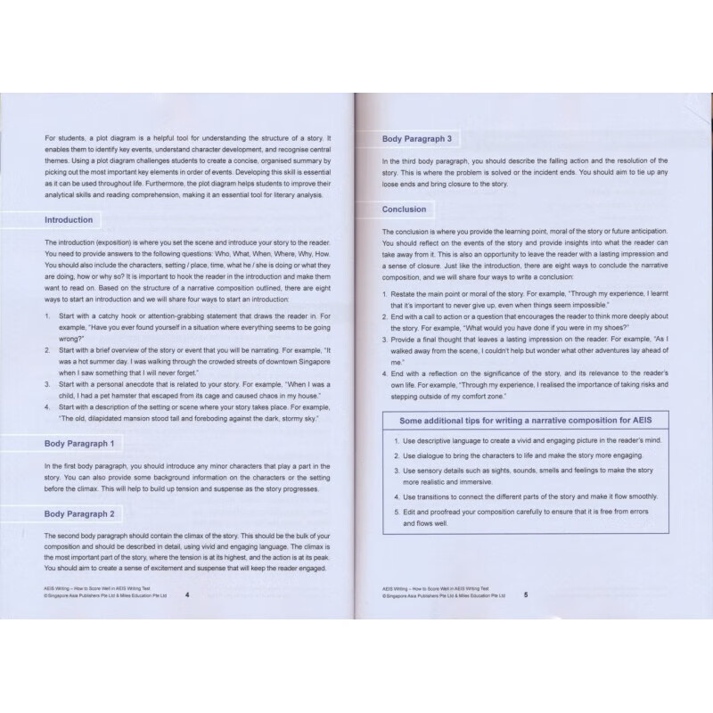 - 相较于国内出版的写作辅导书,新加坡原版教材更能帮助学生克服中式思维和表达习惯,学习地道的英文学术写作风格,并适应新加坡的文化和学术语境,这对于AEIS考试至关重要。