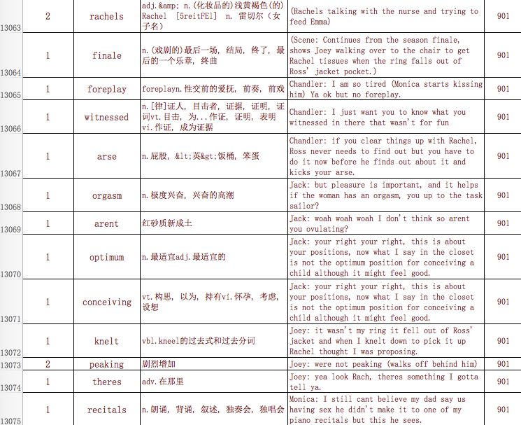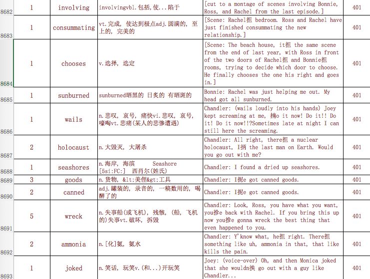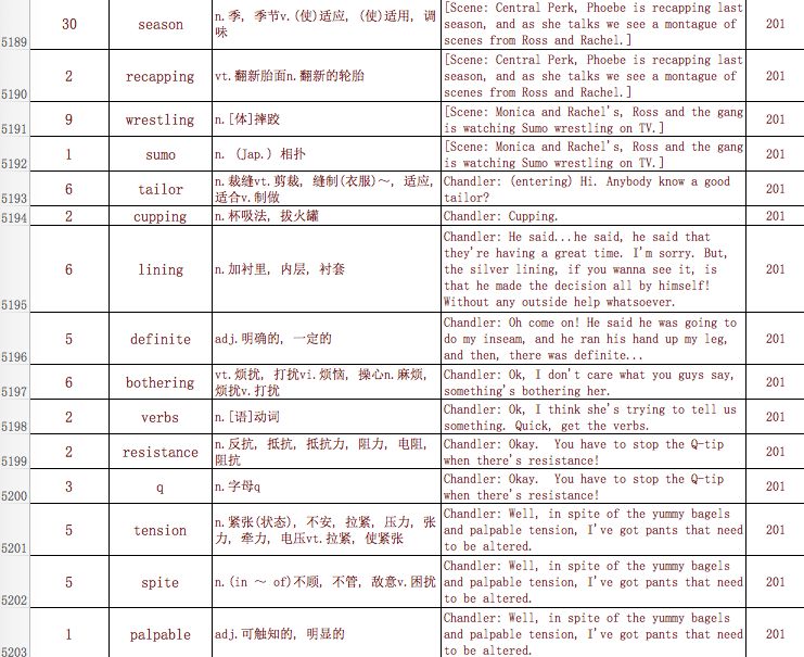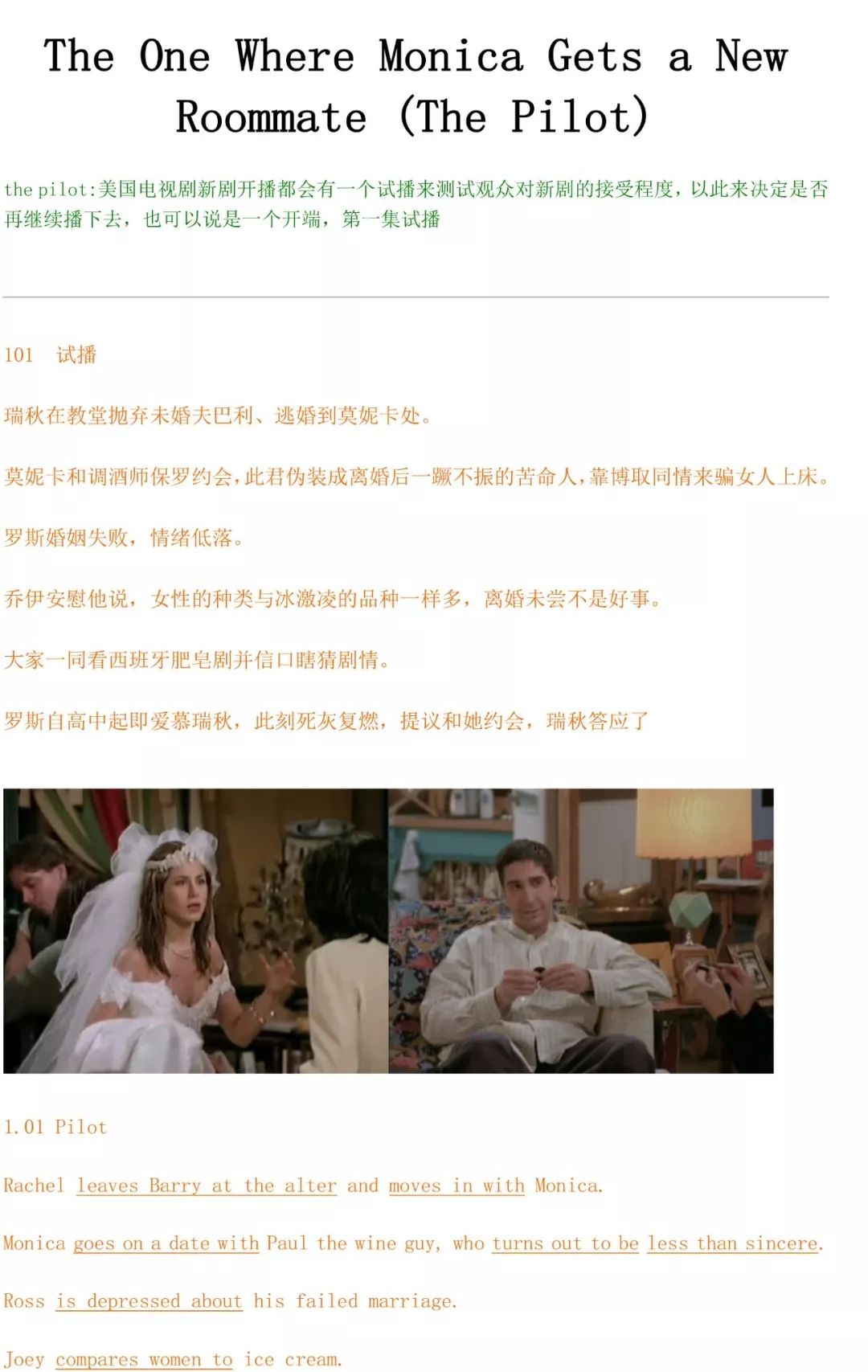 《老友记》全十季:中英字幕高清视频、纯英字幕高清视频、无字幕高清视频+Mp3音频+中英对照台词剧本+重点词汇总表+分集难点解析资料。