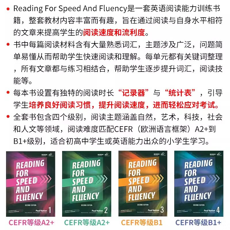 英文描述(Description):In-depth analysis of Reading for Speed and Fluency 2nd Edition full 4 books, including resource details, practical speed & fluency training tips, and global textbook comparison. Suitable for beginners to advanced learners, full supporting resources.
