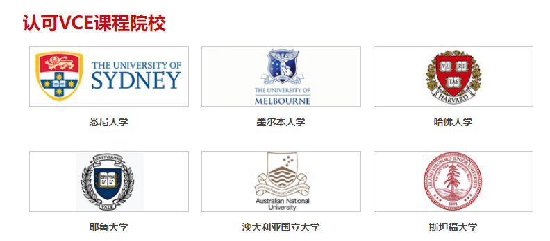 - 完成VCE课程的学生可以无缝衔接世界大学,包括耶鲁、斯坦福、牛津、剑桥等世界名校。同时,VCE课程还为学生提供了丰富的职业教育与培训科目,有助于学生实现就业目标。