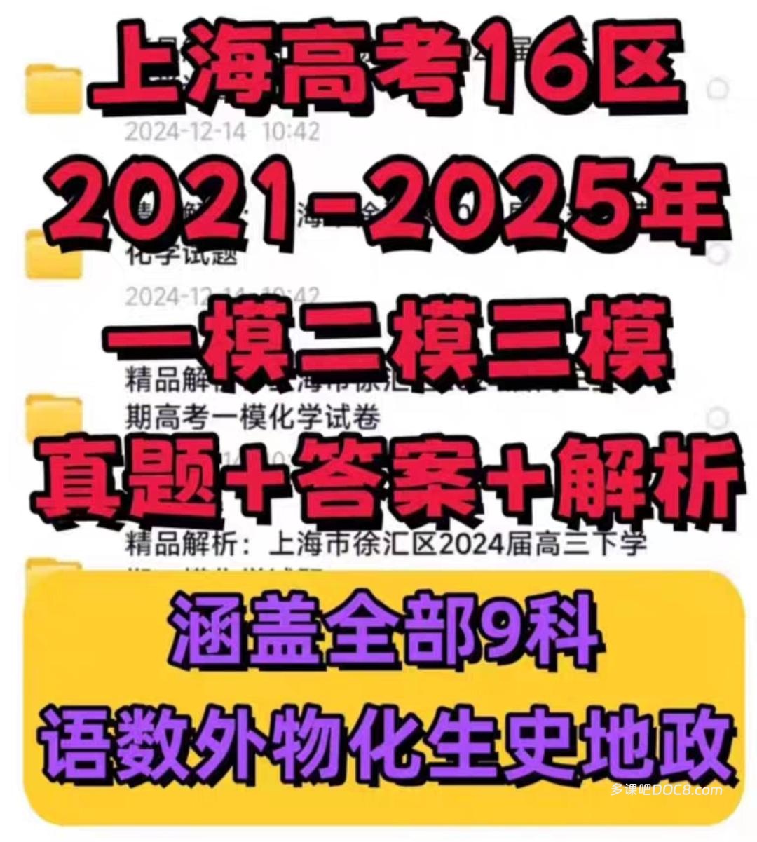 ——/上海高考一模二模三模真题全集(2021-2025含答案解析) 上海16区全科模拟试卷备考资料库 PDF+WORD电子版网盘下载/