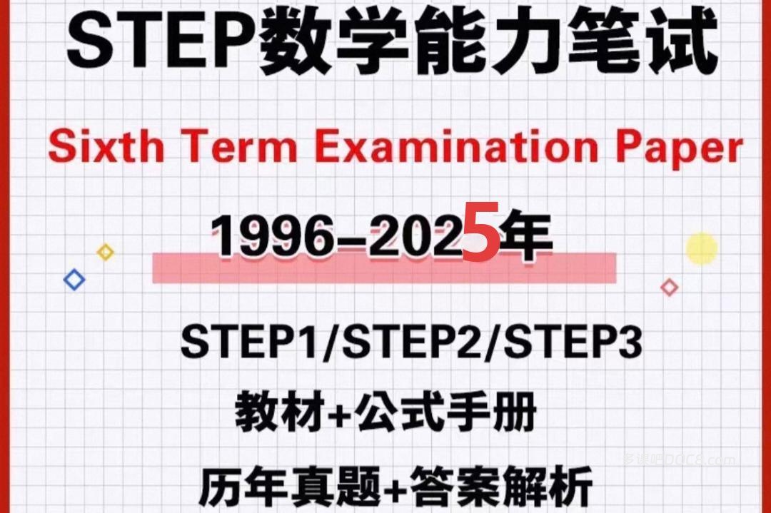2025最新剑桥STEP考试备考资料合集,是针对STEP(Sixth Term Examination Paper)考试的系统性备考资源,涵盖2011-2024年完整真题(含STEP 2、STEP 3)、2019-2024年模拟题(含2024年最新真题)、官方考官报告(2019-2024年)、公式手册(Formula Booklet)及进阶问题集(Advanced Problems in Core Mathematics)等核心内容。
