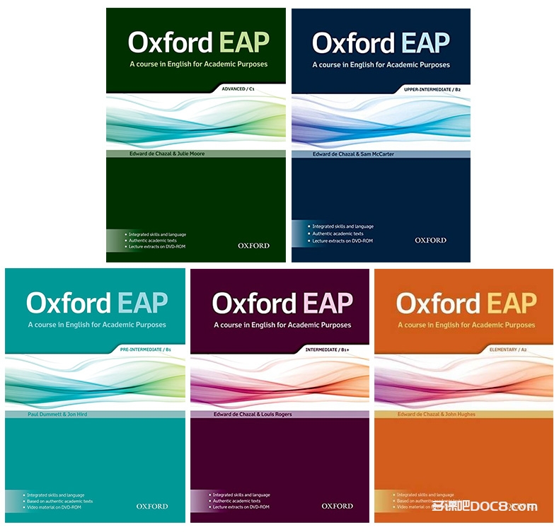Oxford EAP(English for Academic Purposes) 是牛津大学出版社推出的学术英语旗舰教材,专为计划赴英语国家留学或进行学术研究的学习者设计,覆盖CEFR A2-C1级别(基础到高级)。教材以 “真实学术场景+跨学科语言训练” 为核心,将学术英语技能与学科知识深度融合,被全球多所高校(如牛津、剑桥)列为预科课程指定用书。