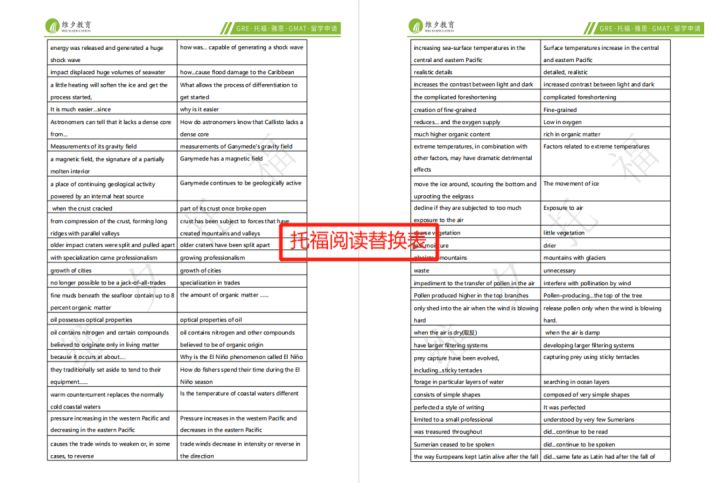 我们把阅读中曾经出现过的同义替换题目都给大家挑出来,整理成托福阅读的正确答案,做成了阅读替换表。