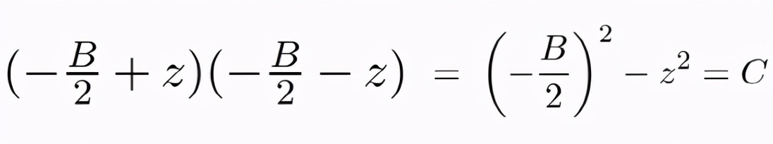 论文指出,当R 和 S 的和是-B,二次方程两个根的平均值就是-B/2。所以,求根,就是在找-B/2±z,其中的 z 是单个未知量。(若 z 是零,则 R=S=-B/2)。