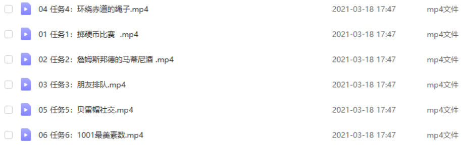 | ├──任务05:几对梨.mp4 296.82M