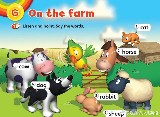 每单元开头,教师会引导孩子学习新的单词。让孩子建立“词汇发音”和“图像”之间的关系,理解听到的英文词汇,慢慢自己口中“蹦出”这些单词。