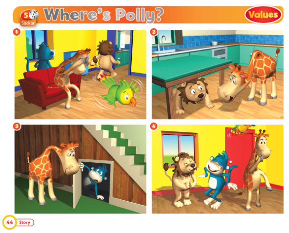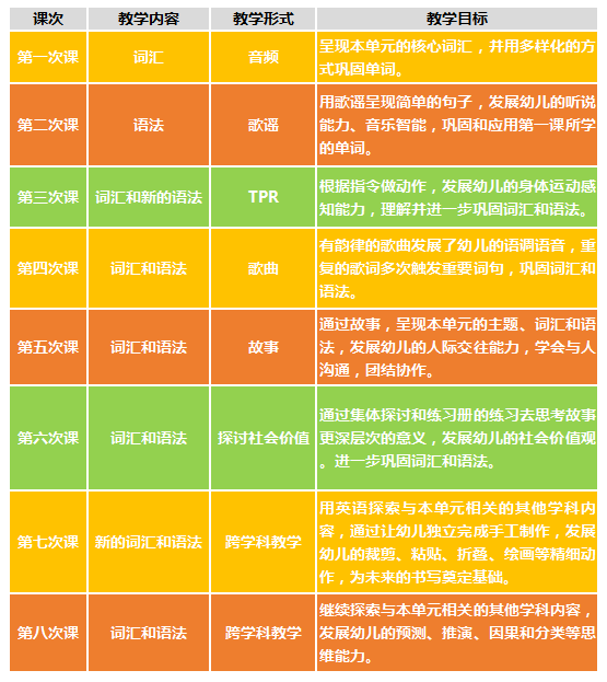 一节课,教师将通过组织集体探讨和练习册的练习去思考故事更深层次的意义,发展幼儿的社会价值观,并进一步巩固词汇和语法。