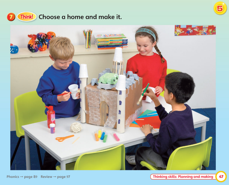 第三级中,让孩子去组织信息(organising information),比如,你的家是什么样的,搭建一个心目中的房子吧~