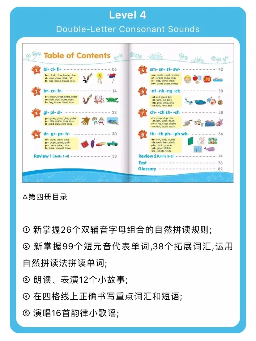 ① 新掌握26个双辅音字母组合的自然拼读规则;