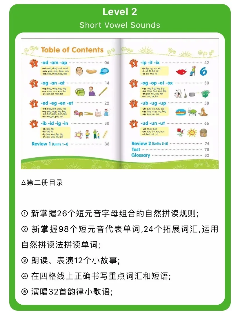 ② 新掌握98个短元音代表单词,24个拓展词汇,运用自然拼读法拼读单词;