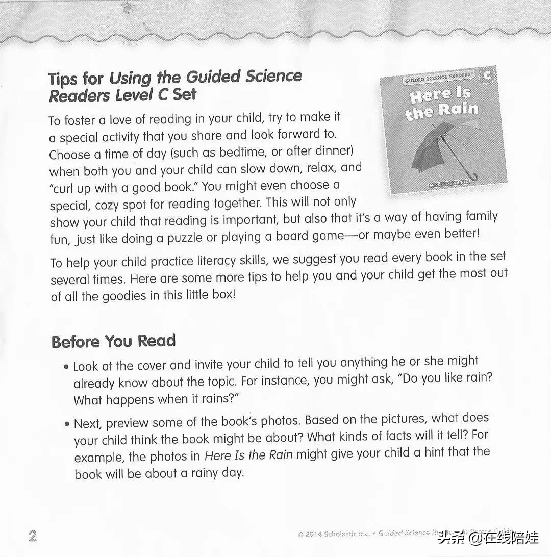 Guided Science Readers也是一本非常好的家庭英语启蒙读物,除了阅读材料本身,每一个级别都配备了练习活动手册(My Activity Book)以及使用指南,能很好地帮助家长和小朋友高效合理地使用这个系列。当然,还有为小朋友准备的精美贴纸哟!