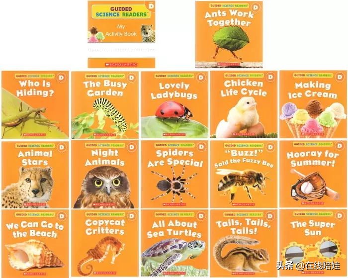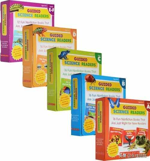 Guided Science Readers系列,分A、B、C、D、E、F六个级别,以科普为主题的分级读本,分级的标准是美国主流分级系统Guided Reading Level。这个系列不仅能作为功能书补充绘本在英语系统性学习上的空白,更有丰富多元的科学主题,提高孩子的阅读乐趣,增加背景知识,拓展词汇量与培养独立阅读的能力。