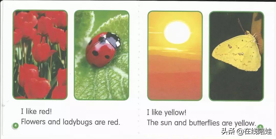 很明显,虽然都是讲颜色,但是句式和内容都有所扩展。循序渐进,由浅入深,对孩子的系统学习是很有帮助的。