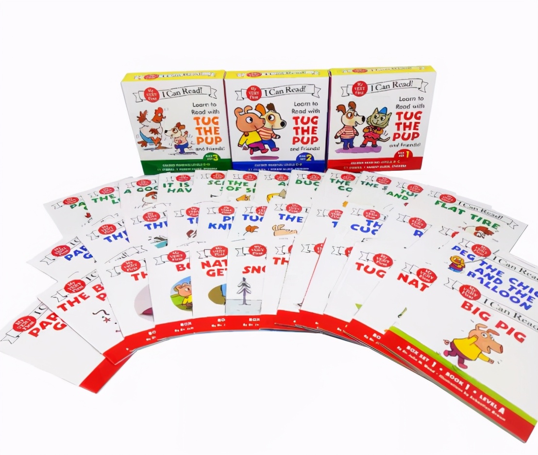 My VERY First,级别对应的GRL级别是A-E,卡通角色是Tug The Pup塔戈小狗。适合2-6岁。一共3套,分为红、黄、蓝三个颜色,每套11册,每本书封面下边都标明了GRL级别(GRL,即Guided Reading Level,通常也叫做A-Z,是美国小朋友阅读分级的一种),每盒还包括一本家长阅读指南和奖励贴纸。3套原版网上约160元。