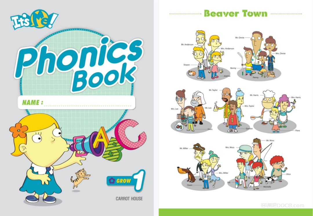 - 自然拼读(Phonics Book):系统覆盖26字母发音、短元音(如cat)、辅音组合(如bl, cr),首创拟声词肢体响应法(如《grow_1_phonics》用"zzz"音配合睡觉动作)。