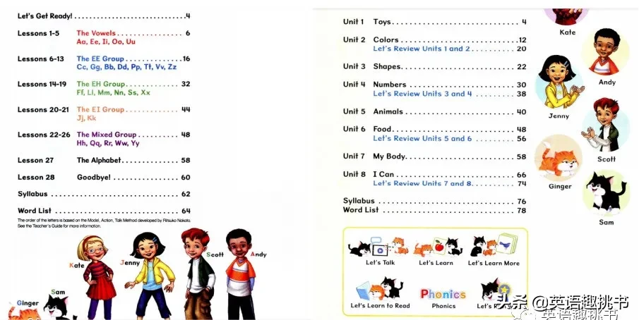 从L0自然发音到第L3、L4的短句短文,再到L5、L6较长的文章,教材对孩子语言能力的培养进行了精心的规划。又根据少儿学习特点,教学手段丰富多样、图文并茂,配套音视频、童谣儿歌、游戏等各种学习资源。