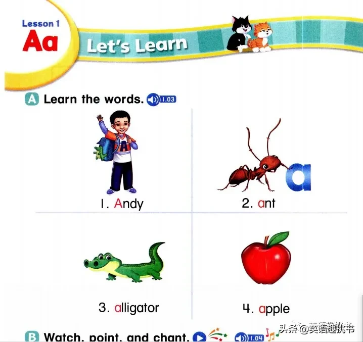 L0起步阶段Let's Begin两级,主要教授学前儿童字母、常用人名、数字、颜色、形状以及日常基本对话。