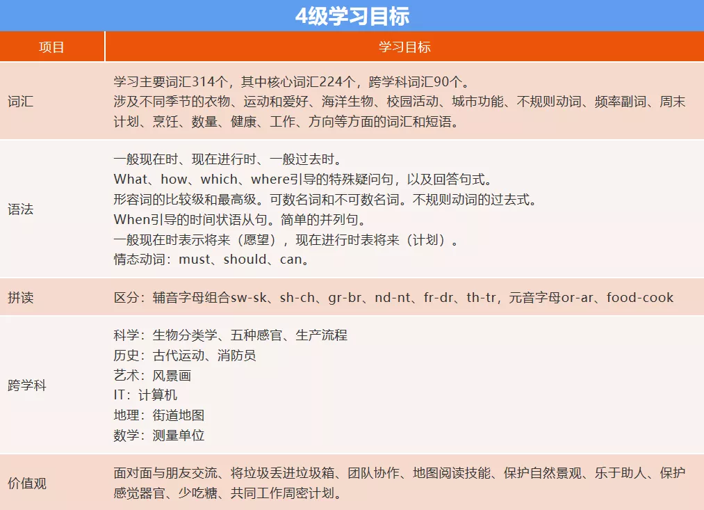 Starlight教材一共分为六个级别,内容涵盖了新课标小学阶段英语的基础知识点以及语法,并涉及了部分初中知识点。在新课标的内容基础上,提高和补充孩子的英语成绩和能力。该教材的教学重点,与国内新课标非常相似,重视词汇、语法、拼读、学科拓展等,非常适合走体制内升学路线的孩子使用。Starlight教材的难度等级从CEFR Pre A1- B1,同时对应剑桥少儿英语的Starters-KET。