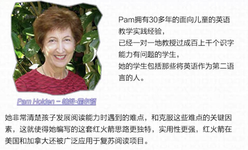 这里不得不提一下红火箭系列的主要作者、编者——Pam Holden(帕姆·霍尔顿)。名字我们可能都比较陌生,但她曾经是编写海尼曼分级读物的语言专家之一。海尼曼,大家都耳熟能详了,在英语分级阅读界那是响当当的名号。