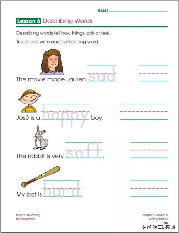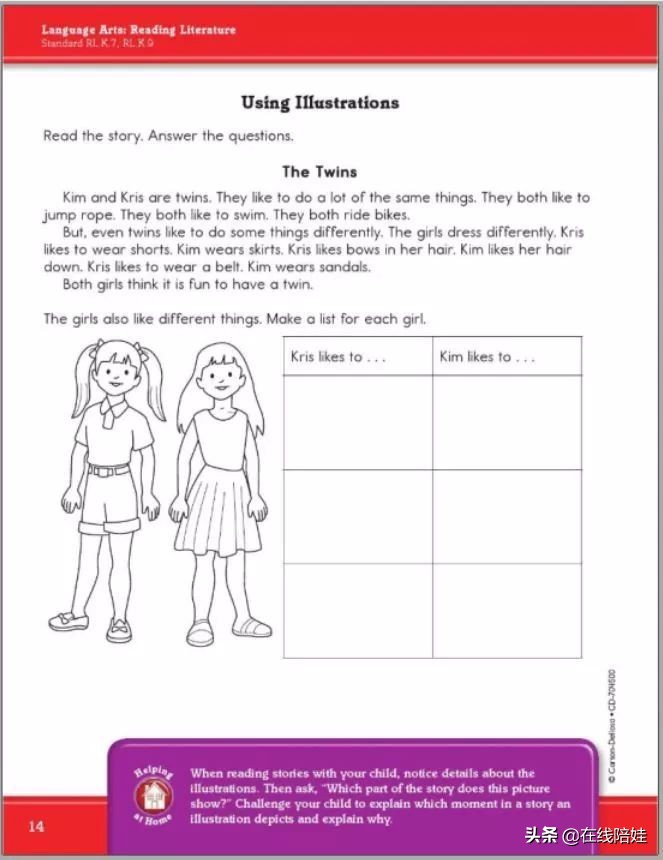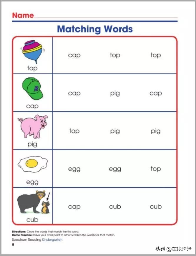 Spectrum所有科目里我最喜欢Reading,Reading里面有各种的场景,可以锻炼孩子看图说话。也有关于阅读的最基础的训练。比如理解词汇,理解事件发生的顺序等等。