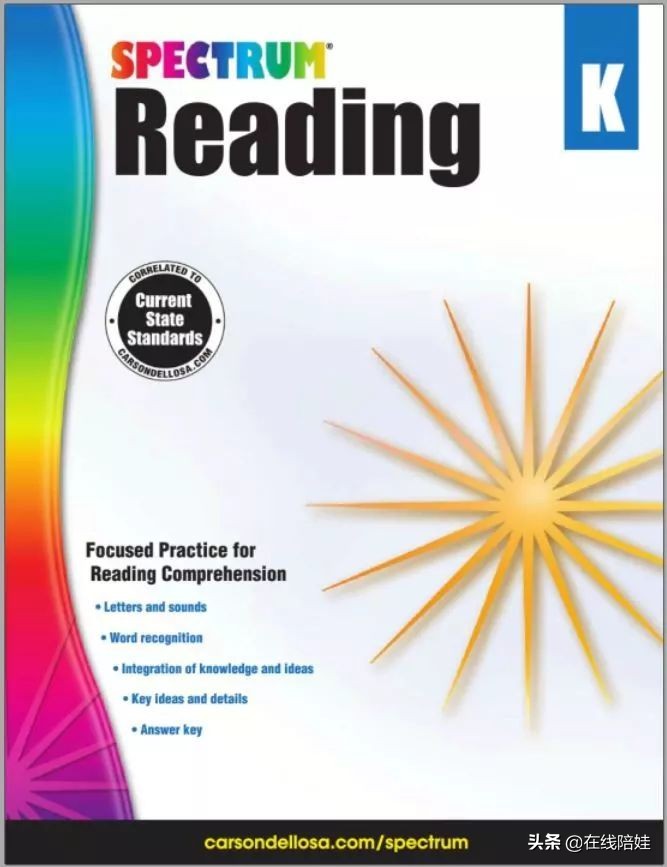 熟悉我的同学都知道我之前是Evan Moor练习册的粉丝,她家的卷笔刀,Smart Start,Daily系列和其他零零散散的练习册都是精品。直到我发现了Spectrum的练习册。Spectrum和EM类似也是专门出练习册,在美亚上Spectrum的评价更多更好,所以出于好奇我就找来看看,没想到一发不可收拾。这里我不想说哪个社的更好,只能说各有千秋。今天分享的Spectrum练习册包括下面这几类,除了phonics这类其他都是全年级的:
