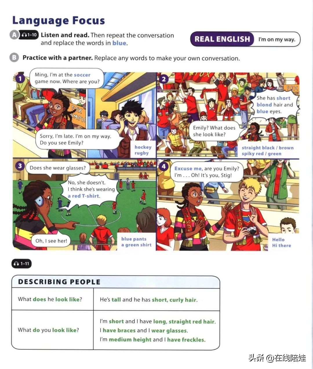 (这一节旨在教孩子如何向别人描述他人的外貌特征)