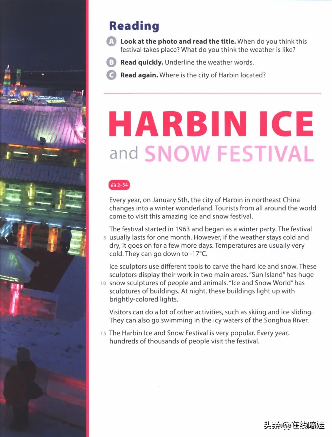 (人文阅读,介绍了哈尔滨冰雕和冰雪节的情景)
