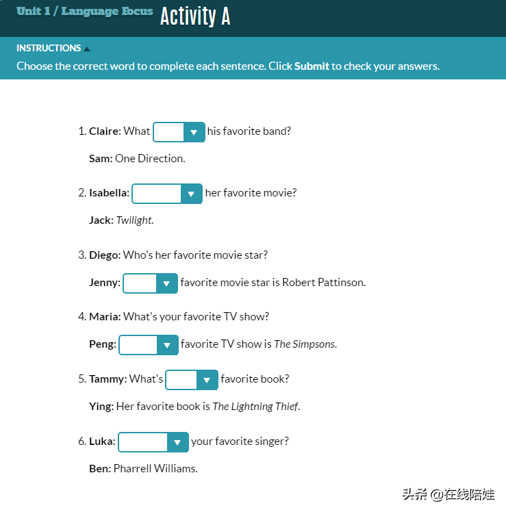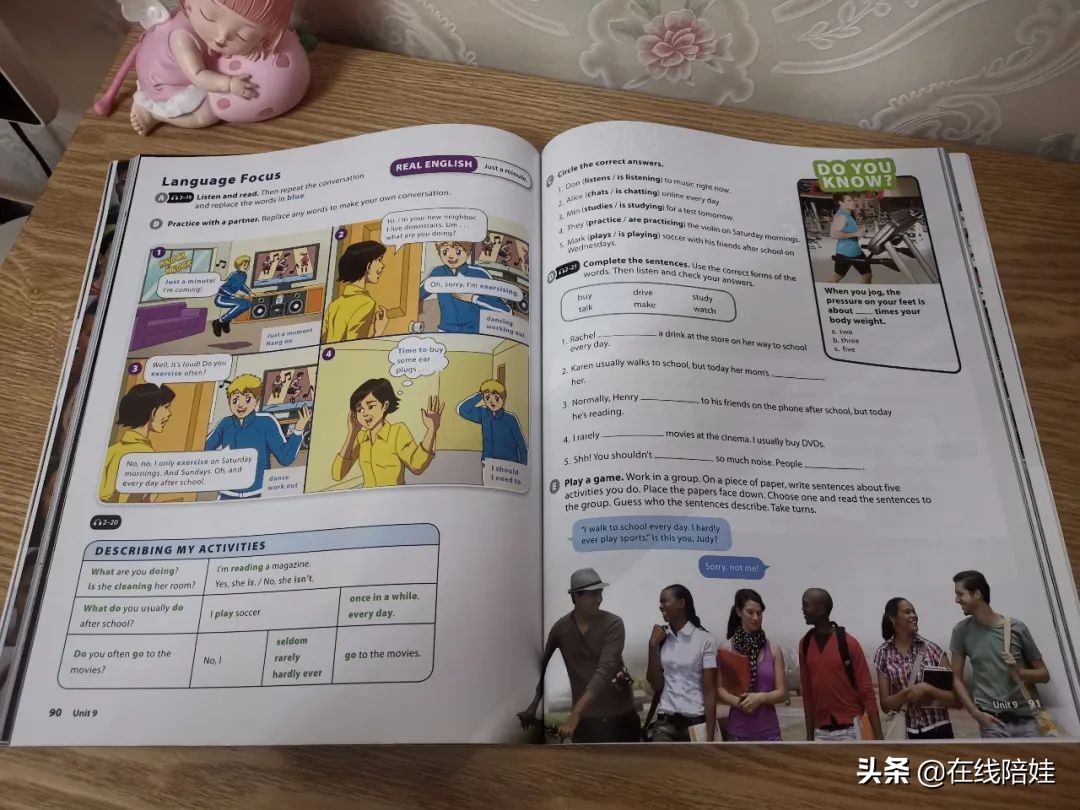语法形式还会在后续的句子和听力练习中反复出现,让孩子不断巩固并加深印象。