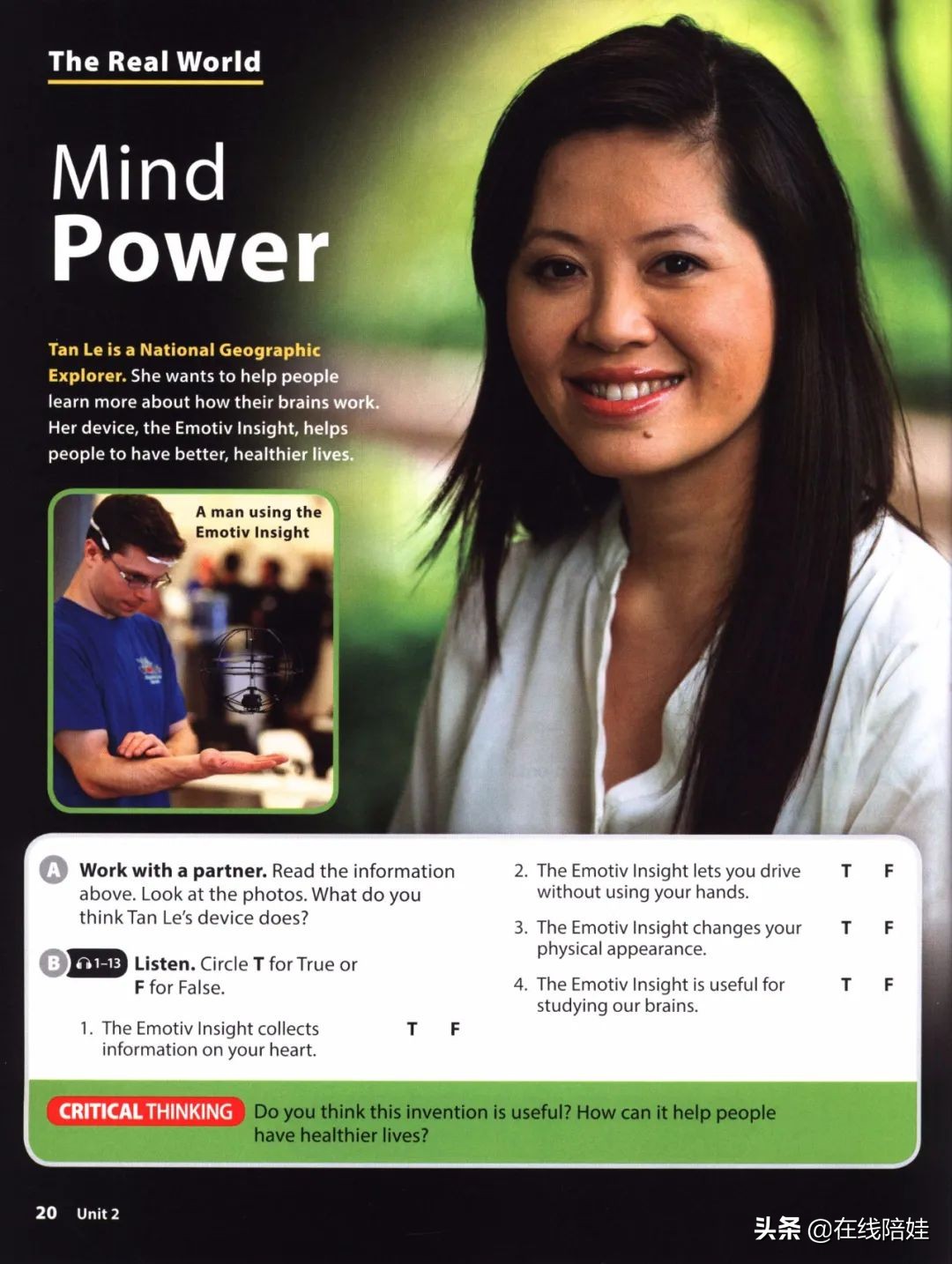 结束了语言点的教学,教材则带领学生进入The Real World版块。这个板块比较重视学生听力能力的培养,更重要的是,它还特别宝贵地加入了Critical Thinking(批判性思维)板块,用来引导学生对材料内容进行讨论和评价,并进行合理推测。