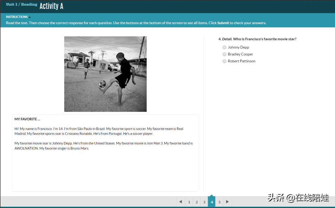 阅读训练时,会先让孩子看图片,尝试从图片中提取有用的信息。第二步,教给孩子通过略读(Skim Reading)寻找有用的信息。