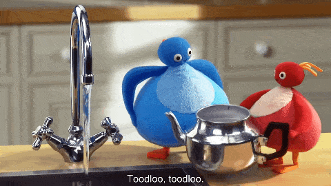 为了能让屏幕前的孩子弄明白什么是“full”,知更鸟们打开水龙头放水,拿来一个又一个容器,放满了一个又一个能接水容器。