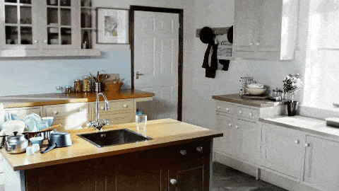 吱吱鸟来到了厨房,画面定格在了水龙头
