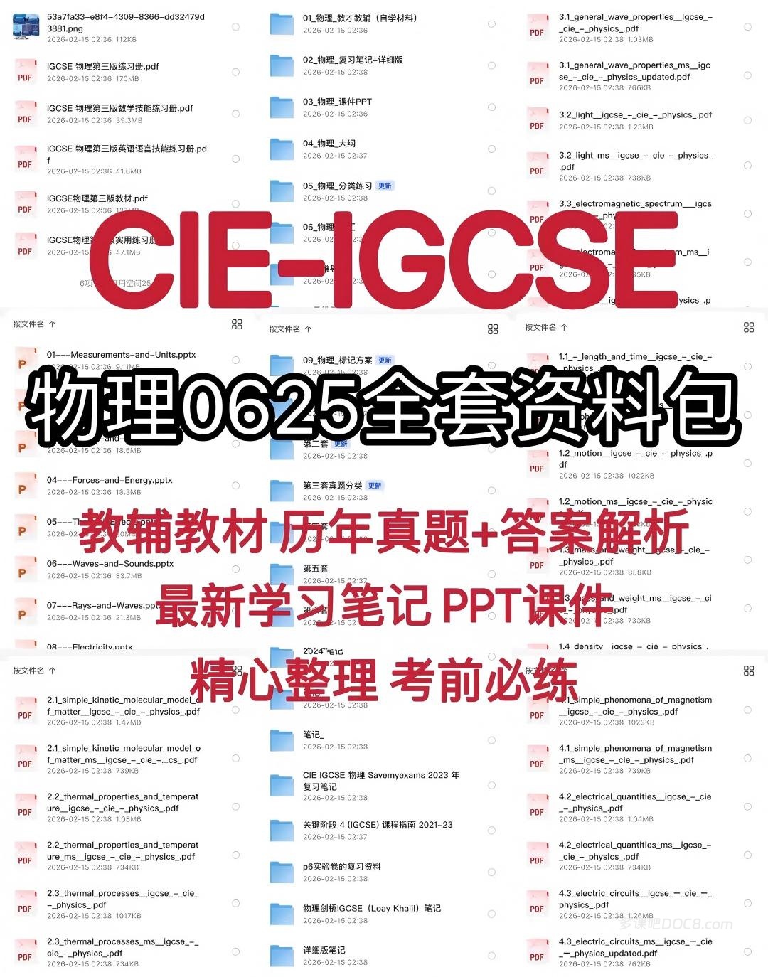 2026最新CIE IGCSE Phyisics 0625物理备考资料合集 PDF电子版考纲真题教材教辅复习笔记PPT课件词汇分类真题导图闪存卡 百度云网盘下载