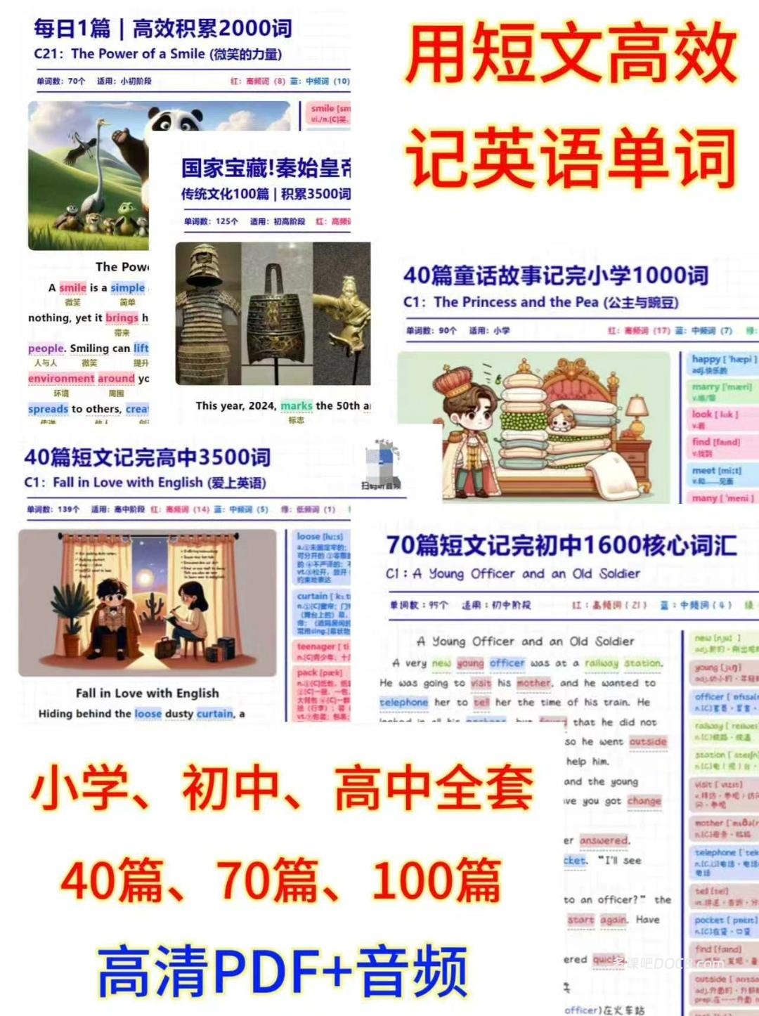 当我第一次系统梳理这套短文高效记单词系列词汇学习资源时,最震撼的是其将枯燥的单词记忆转化为有趣的文化探索之旅的巧妙设计。这不仅仅是一套单词表,而是一个完整的词汇生态系统——从小学1000词到高考3500词,通过精心编写的短文,让单词在真实语境中自然呈现,实现理解、记忆、应用的三重突破。