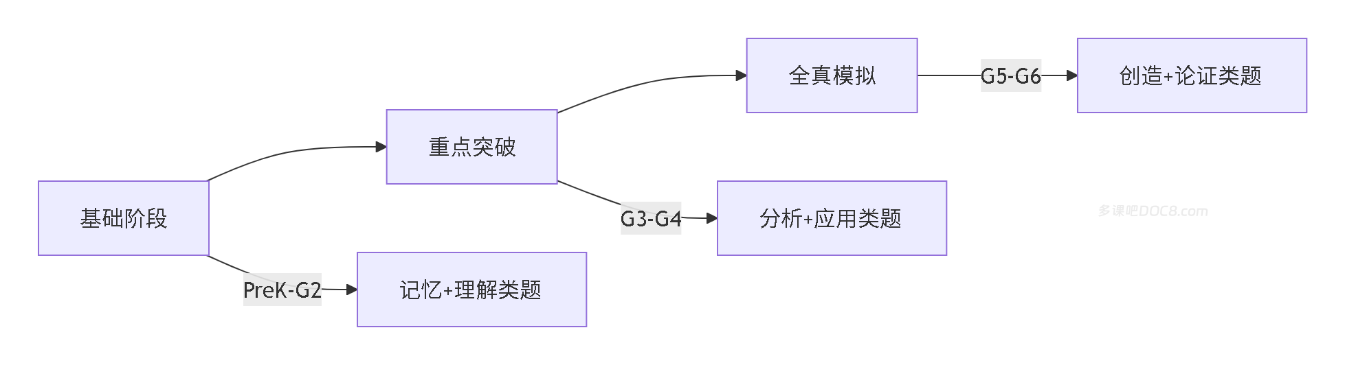 | 核心目标 | 学术能力+社会议题解决 | 知识点覆盖度+解题速度 | 基础技能达标 | 分流选拔(IP/Express赛道) |