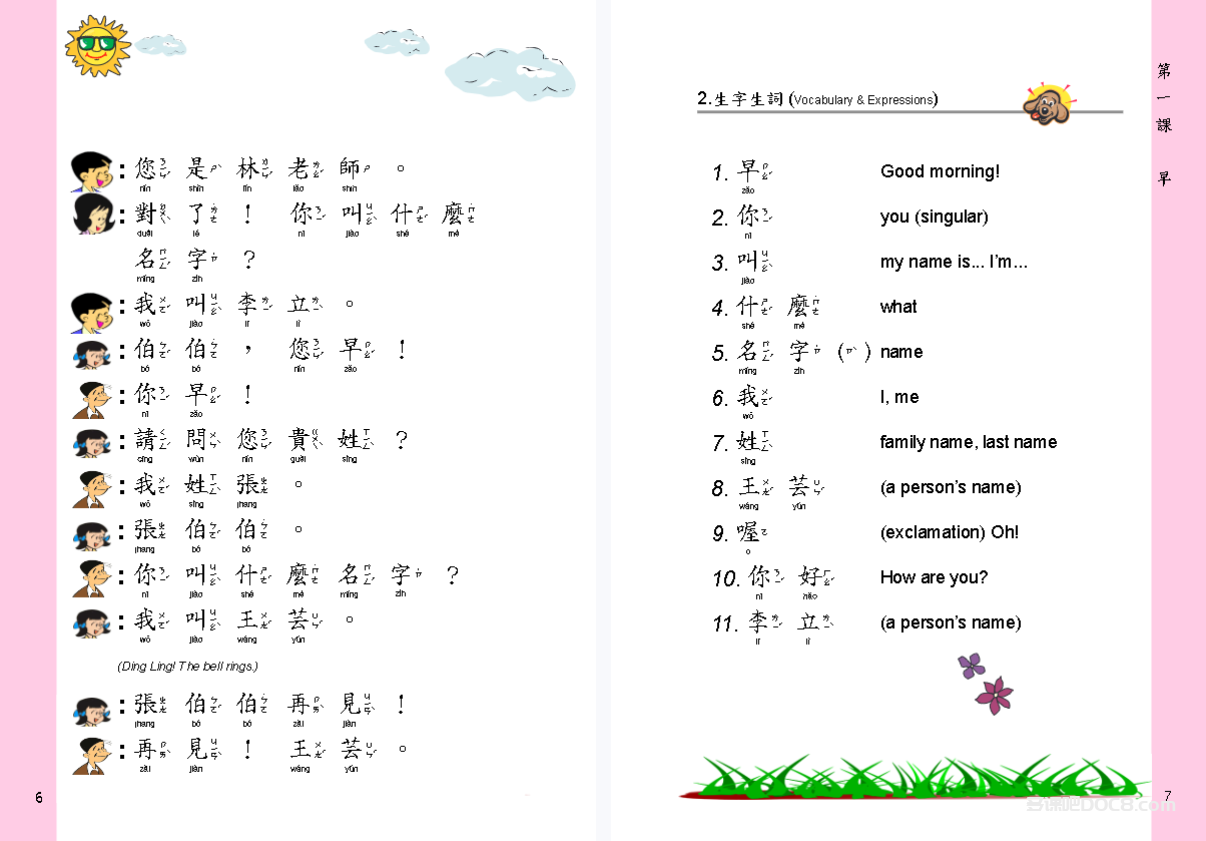 - 5-8册:引入生活场景对话(如购物、节日),并逐步过渡到简单段落阅读。第7册的“春节习俗”单元,通过图文结合的方式对比中西方节日文化差异。