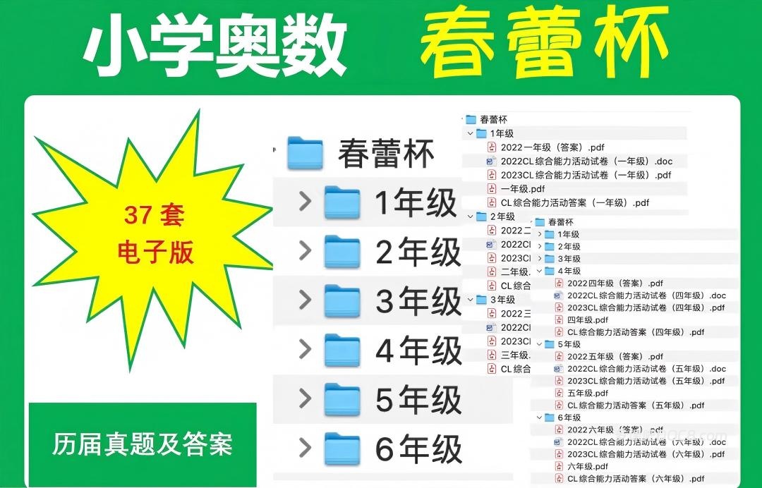 深度解析春蕾杯竞赛资料合集,按年级分类介绍真题与CL试卷特色,附同类型竞赛横向对比,助孩子系统备考,提升数学思维与竞赛竞争力!