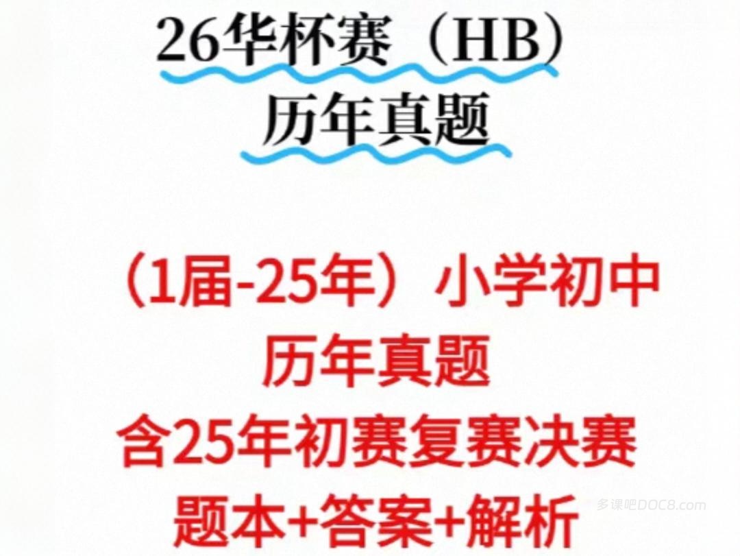 本资源合集涵盖华杯赛历届真题1-23届、华数之星真题2015-2024、2025最新真题、2026最新真题(持续更新),并按年级分组整理了初级组和二级组资料,总计数千道真题,附有大量答案解析和视频讲解。