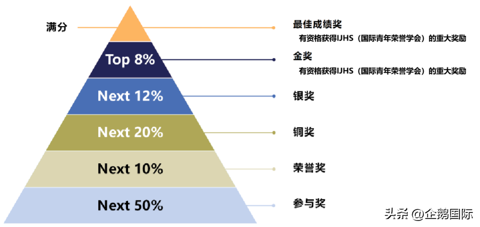 金奖和满分获得者,有机会加入国际青少年荣誉协会(IJHS)和青少年领袖营(YALA),获得满分的学员还将最高获得5000美金的奖金激励。