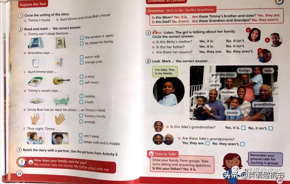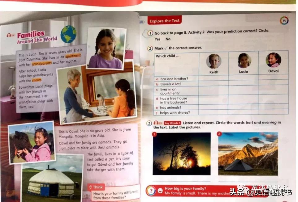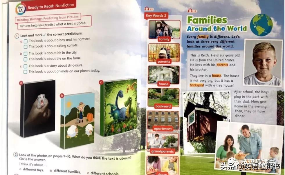 Unit1以Family为主题:每单元甚至每个小节学习前都有预热部分。