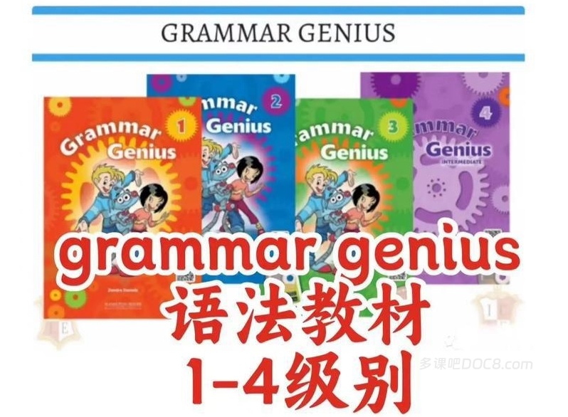 - 核心教材:共分4个级别(Grammar Genius 1-4),每级配备学生用书(SB)