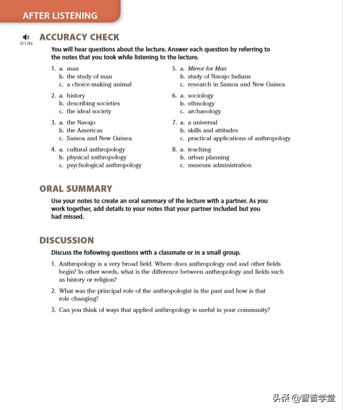 5.听后活动通过结对和小组活动为学习者提供讨论讲座的机会