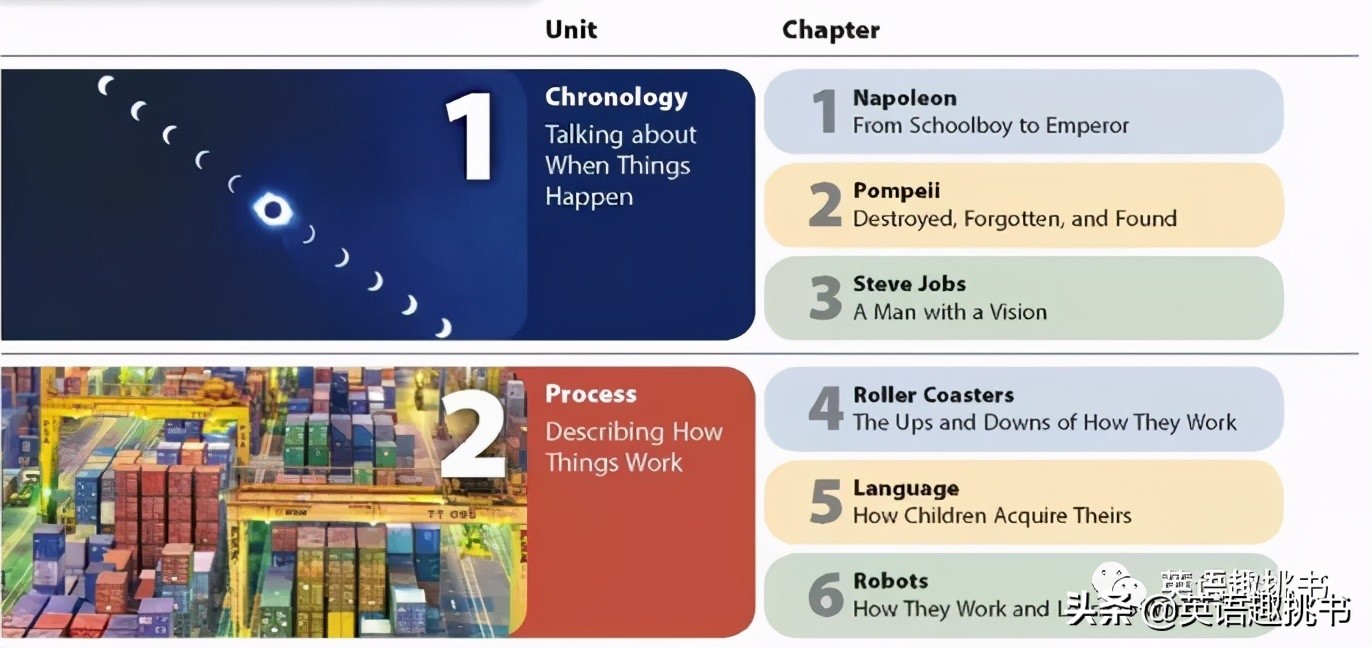 比如第一本书第一个单元就是按时间顺序 Chronology,讲拿破仑的人生轨迹,讲庞贝古城如何被火山掩埋。虽然是历史类的,文章并不冗长。