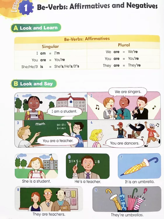 - Look and Learn:展示新的语法目标,通过图表和解释帮助学生理解。