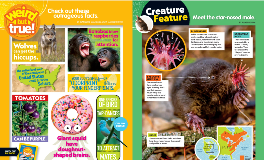 | 出版方 | 美国国家地理学会 | 美国国家野生动物联合会 | 时代周刊 | 学乐教育集团 | Highlights for Children, Inc. |