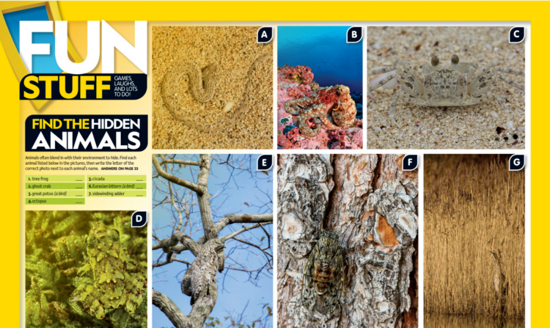 | 固定栏目 | Amazing Animals、Weird But True、Cool Inventions、Jokes、Poster | Ranger Rick’s Adventures、Wild Facts、Nature News、Puzzles | News Briefs、Debate、Career Profile、Quiz | News Close-Up、Word Work、Writing Prompt、Graph | Hidden Pictures、Puzzlemania、Ask Arizona、Poetry |