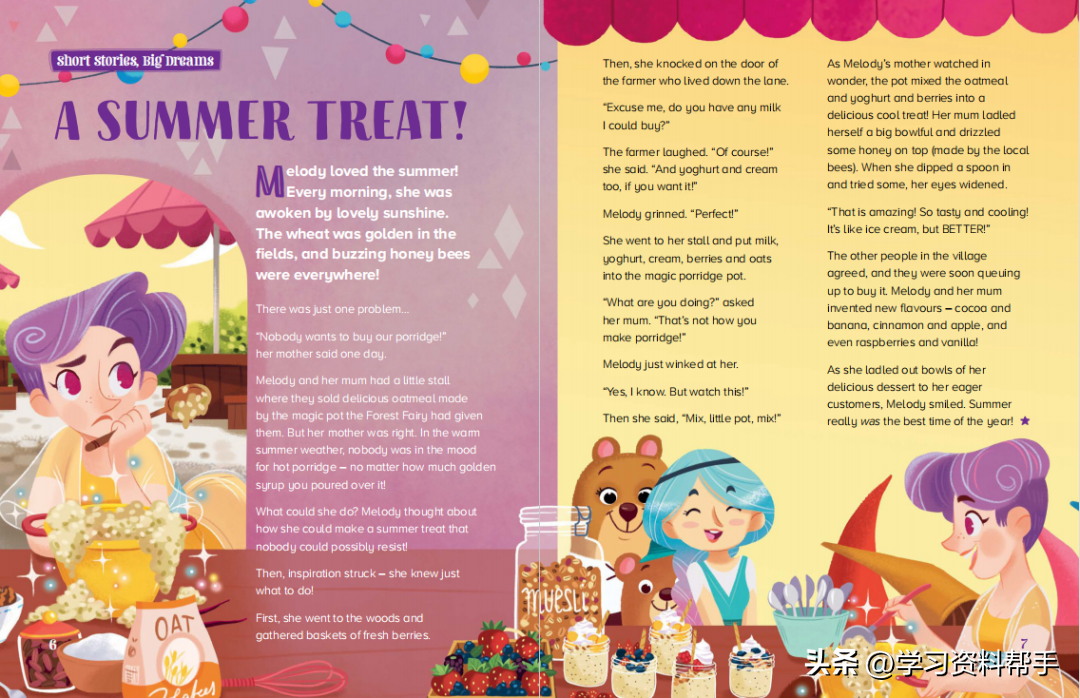 杂志每一期都会为各个年龄段的孩子提供6个精彩的故事,故事的类型包括童话、神话、寓言,以及不同文化背景的历史故事和一些作家创作的新的故事。